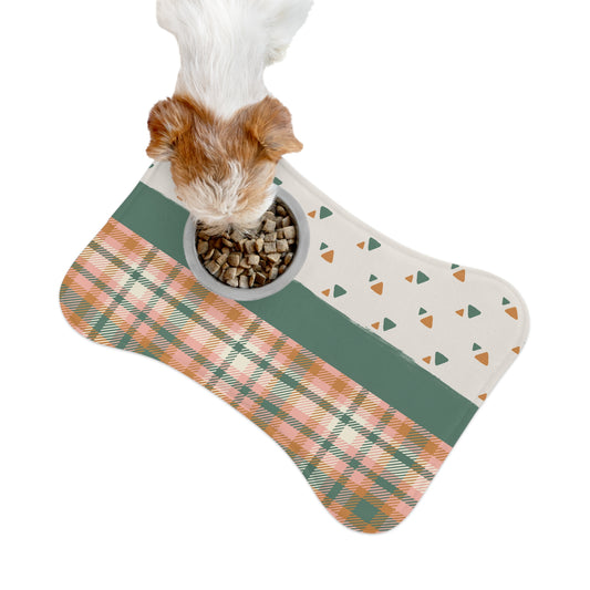 "Geometric Plaid Pup Retreat" | Pet Feeding Mat